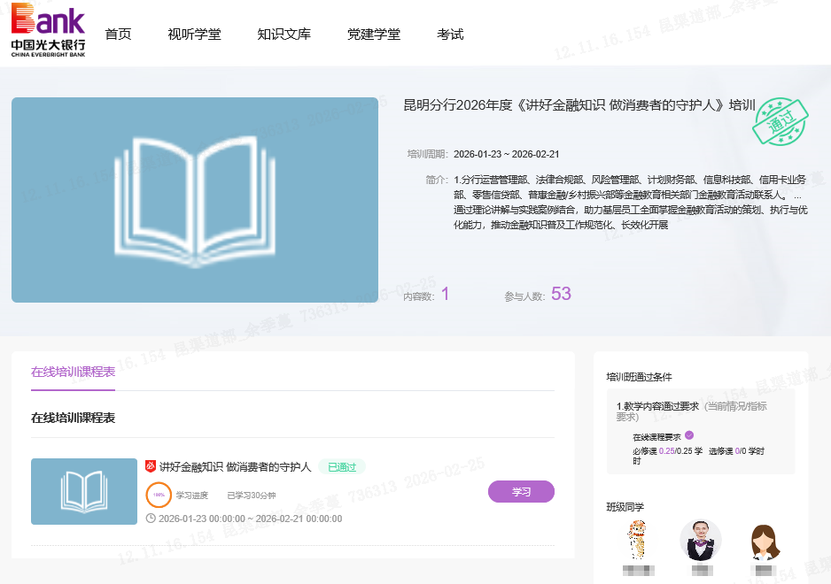 中国光大银行昆明分行开展2026年度"讲好金融知识 做消费者的守护人"培训