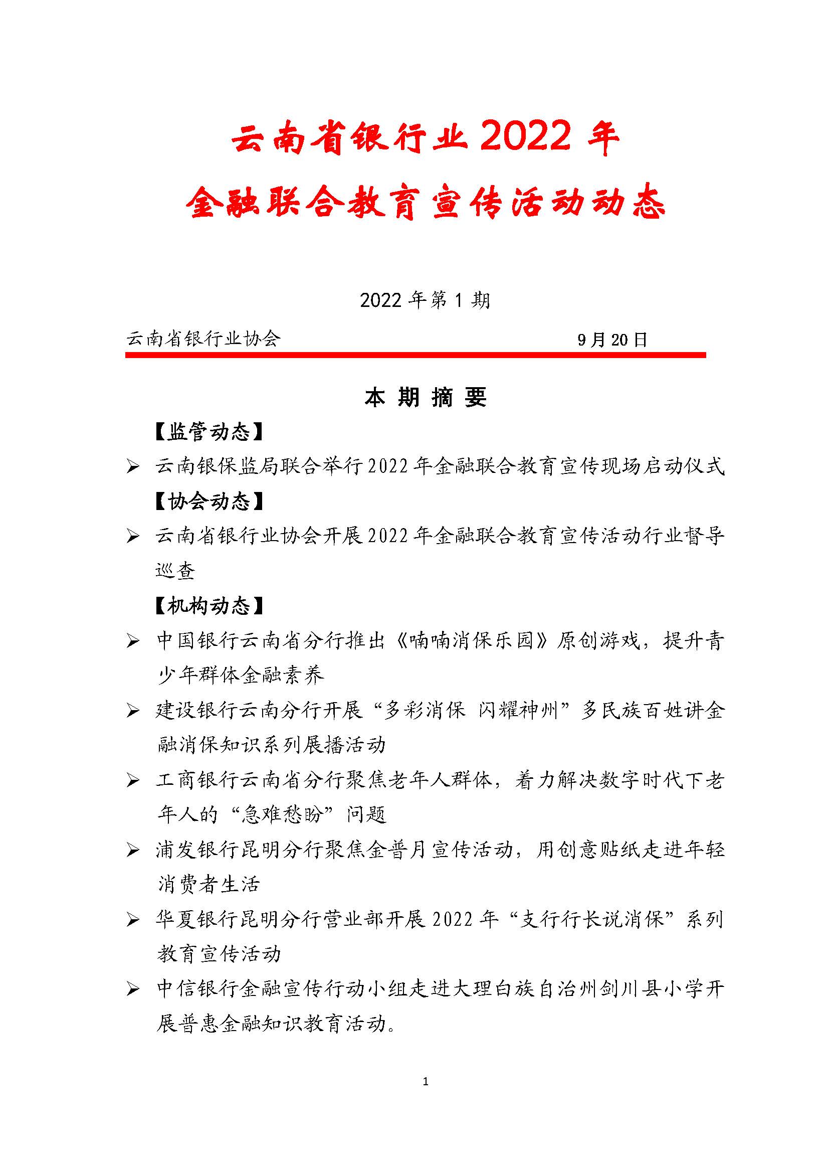 >云南省银行业2022金融联合教育宣传活动动态(第一期)