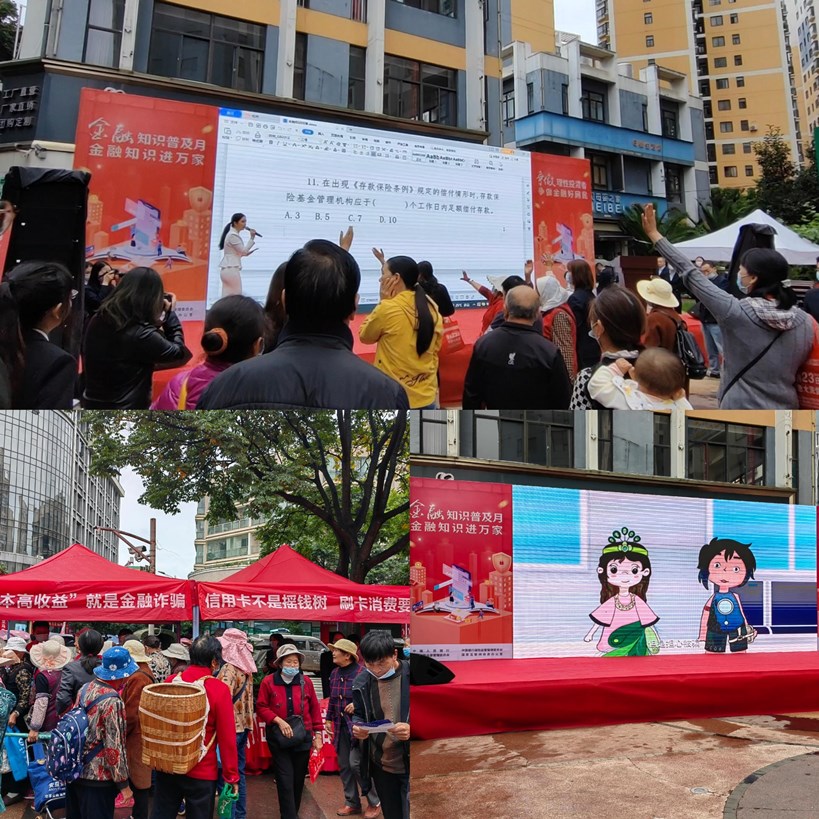 活动由中国人民银行昆明中心支行、中国银行保险监督管理委员会云南监管局、中国证券监督管理委员会云南监管局、云南省互联网信息办公室主办,邮储银行云南省分行牵头,邮储银行昆明市分行承办,活动得到当地人行、银保监、金融办、及农业银行、太平洋人寿、渤海证券等9家银行保险证券机构的大力支持,各机构领导带队,组织了骨干人员参加宣传。