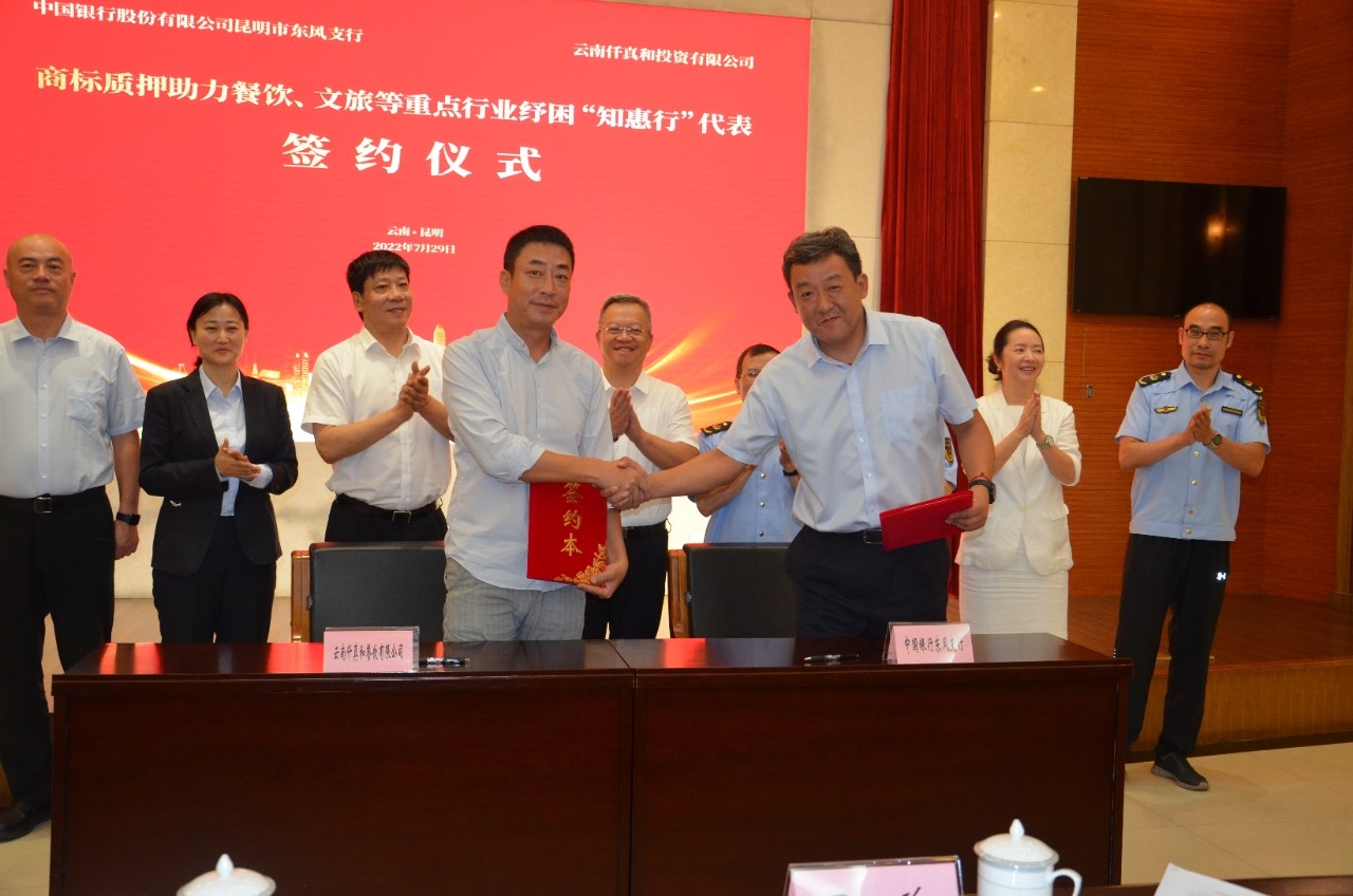 中国银行云南省分行与省知识产权局合作开展商标质押助力餐饮文旅等重点行业纾困“知惠行”专项活动