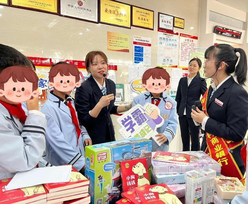 工作人员带领小朋友们进行现场情景模拟,学习接待礼仪,通过简易情景剧和互动问答形式让孩子们知道藏于细微之处的银行服务。在迎来送往的银行大堂,从一句温暖的“您好”开始,到每一步的业务指引,都藏着礼仪之邦待人接物的艺术。同学们认真学习基础服务礼仪,也深刻认识到尊重与友好对待他人的重要性。