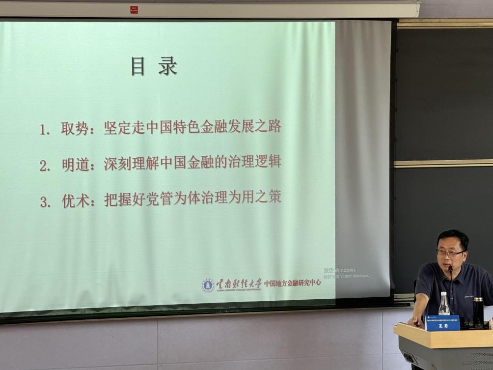 云南财经大学中国地方金融中心首席专家、主任夏蜀老师结合多年金融业工作经验,对“党的领导和公司治理有机融合”进行了深入的分享,从“取势:坚定走中国特色金融发展之路”、“明道:深刻理解中国金融的治理逻辑”、“优术:把握好党管为体治理为用之策”三个方面作了专门讲解,结合案例分析,对构建中国特色现代金融企业制度进行系统讲解阐述。