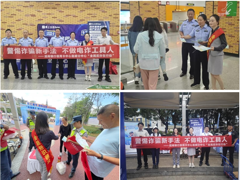 2024年8月23日,招商银行信用卡中心昆明分中心联合昆明市公安局城市轨道交通分局治安大队,在桃园广场及周边地铁站点成功举办了一场以 “警惕诈骗新手法 不做电诈工具人”为主题的公益金融宣传教育活动。此次活动旨在深度提升公众防范新型诈骗的意识,共同营造一个更加安全、和谐的金融消费环境。
