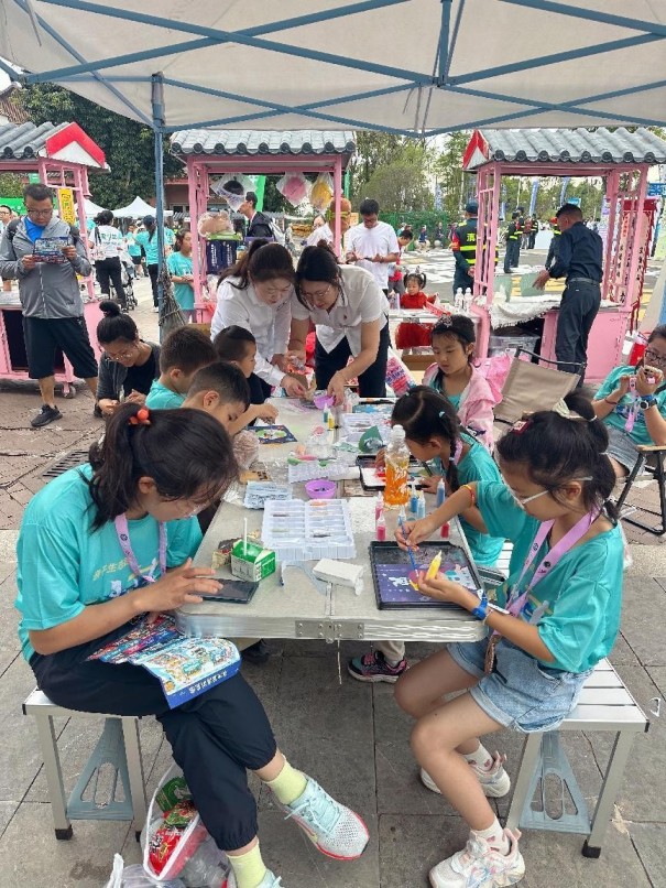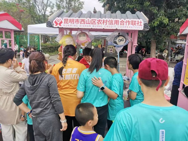 金融赋能,奔跑“昆马”。9月21日上午是一场温馨的半程马拉松——亲子生态跑,这不仅仅是速度的竞赛,更是家庭默契与亲情的展现。西山农信在这场盛会中精心布置了互动区展位,卡皮巴拉、蛋仔派对等公仔备受小朋友喜爱,吸引了众多参赛家庭的目光,工作人员和小朋友积极互动,开展画沙画、diy手工杯垫等游戏,引导小朋友们学习基本的货币知识,了解了储蓄的乐趣,在孩子们的心中悄然种下了金融知识的种子,树立正确的金钱观。