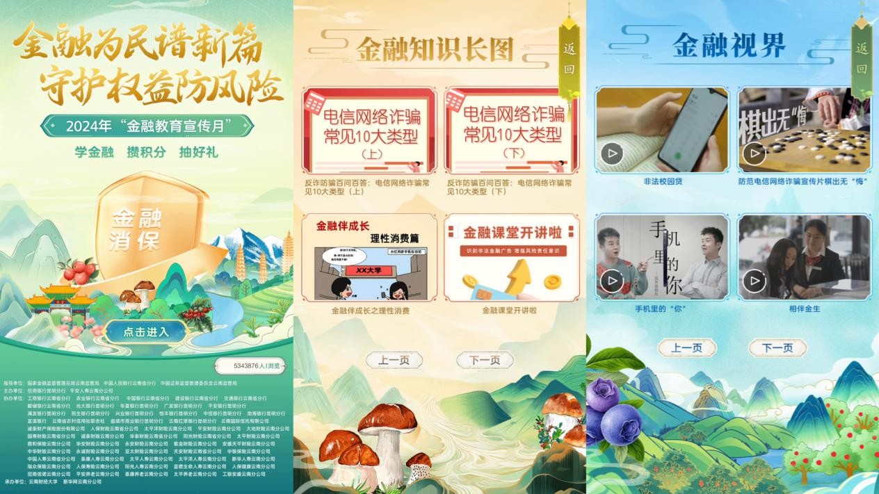 线下端,9月4日,在国家金融监督管理总局云南监管局、中国人民银行云南省分行、中国证券监督管理委员会云南监管局的指导下,由招商银行昆明分行、平安人寿云南分公司牵头,联合省内百家银行保险机构,围绕“监管+机构、教育+实事、线上+线下”的内涵,通过“消保+云品(云花、云茶、云果、云咖、云菌)、博识+美誉”的形式共同举办2024年“金融教育宣传月”启动仪式暨集中教育活动。启动仪式上,来自金融监管部门、政府、高校、金融机构的多位嘉宾发表致辞,并为来自金融机构的25名金融教育宣讲员进行认证,33名金融机构从业人员现场演绎云南金融教育原创MV《云岭金声》。
