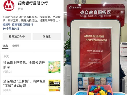 齐发声,共聚力,招商银行昆明分行聚焦重点人群,内外联动,打出“六个一”金融教育活动组合拳,推动金融消费者权益保护工作走深做实,走近金融消费者,贴近生活更多面向,最大化践行企业责任,展现企业担当。