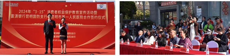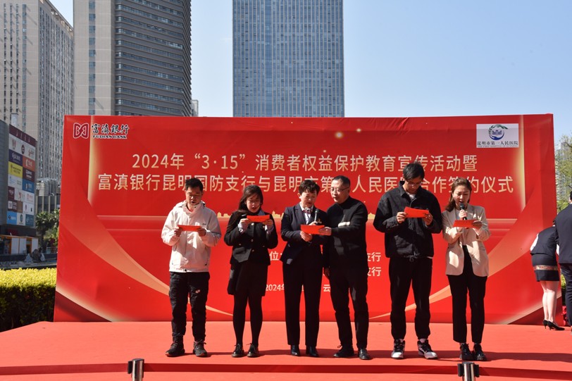 为以提升消费者金融素养和金融安全意识,宣导金融政策、提示金融风险,倡导理性投资理念,增强人民群众金融服务的便利性、可得性和获得感,履行金融企业社会责任,富滇银行昆明国防支行(以下简称国防支行)于3月15日上午,在北辰财富中心举办“2024年3·15消费者权益保护教育宣传活动”。