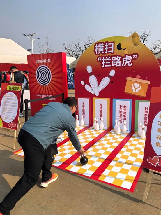 通过“超级神射手”“横扫‘拦路虎’”“金融消费视力表”游园小游戏,将防范非法集资、防范网络电信诈骗、守护金融消费者八大权益的金融消保知识融入其中,游戏全部通关的客户可获得集章卡兑换活动礼品,寓教于乐,吸引了广大的市民群众消费者积极参与。