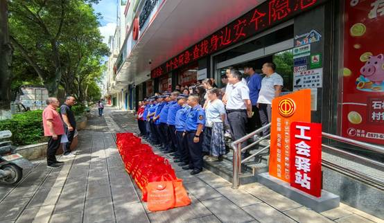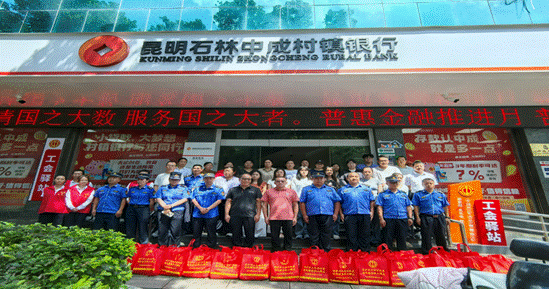 2025年8月12日,骄阳似火,酷热的气息弥漫在城市的每一个角落。昆明石林中成村镇银行(以下简称“石林村行”)与石林县总工会携手,共同举办了一场意义非凡的“城市守护者”慰问活动。城管、快递员、清洁工、外卖骑手,他们就是城市脉络中不知疲倦的守护者,用汗水与坚守编织着城市的美好,此次活动便是为他们送去深情的关怀与崇高的敬意。