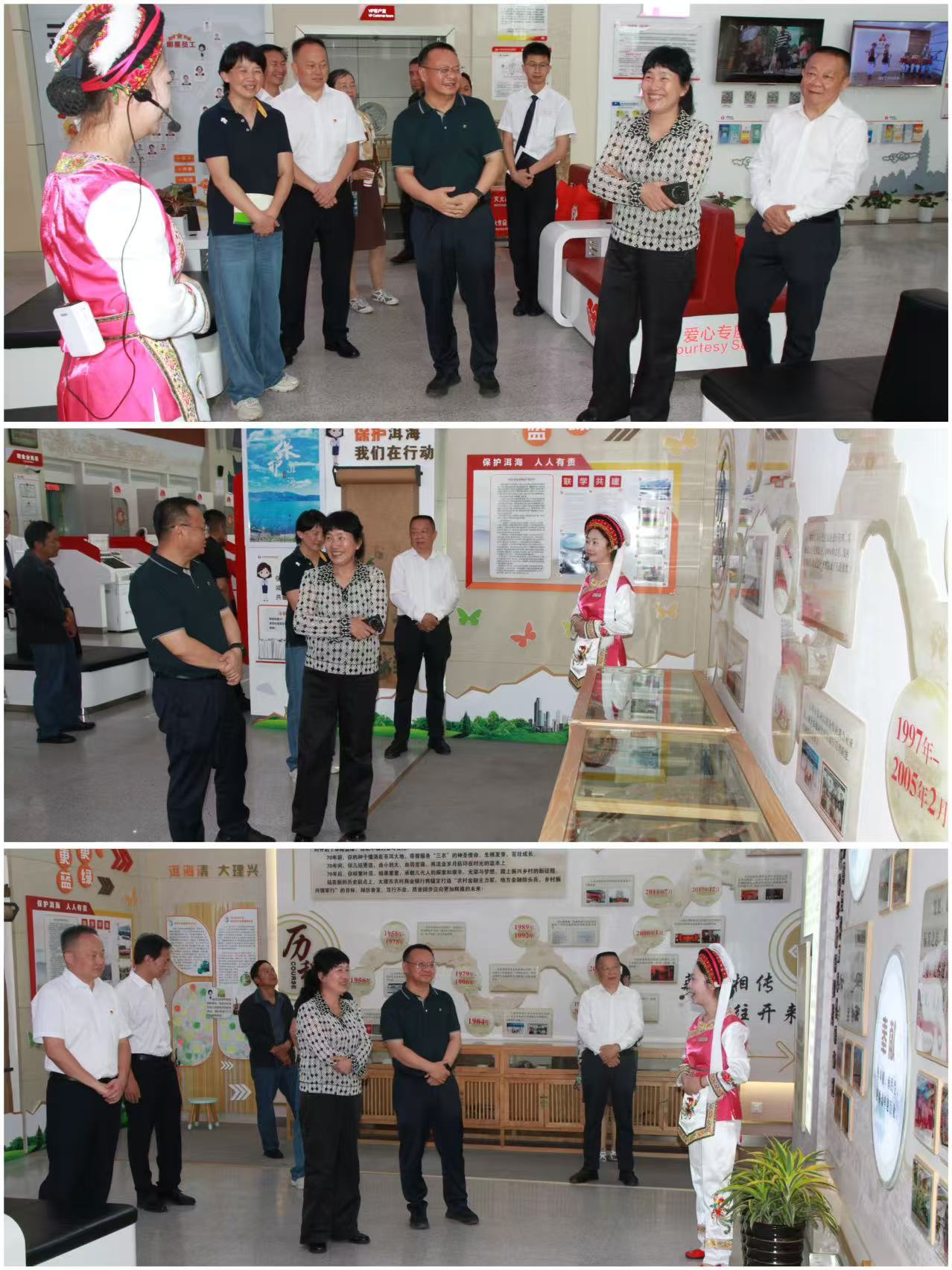 调研组还深入网点进行体验,在全国“百佳”示范网点大理农商行营业部,对该机构坚守“耕耘苍洱,信守乡愁”服务理念,优化厅堂、创新服务、助力企业表示认可;在全国“千佳”示范网点工行保山东路支行,对其传承“历久弥新 惠通先下”理念,以 “便民惠民为民利民”服务、团队协作提升质效等做法予以肯定。调研组对两家示范网点能长期保持高标准服务金融消费者,体现示范网点模范引领作用表示赞扬和鼓励。