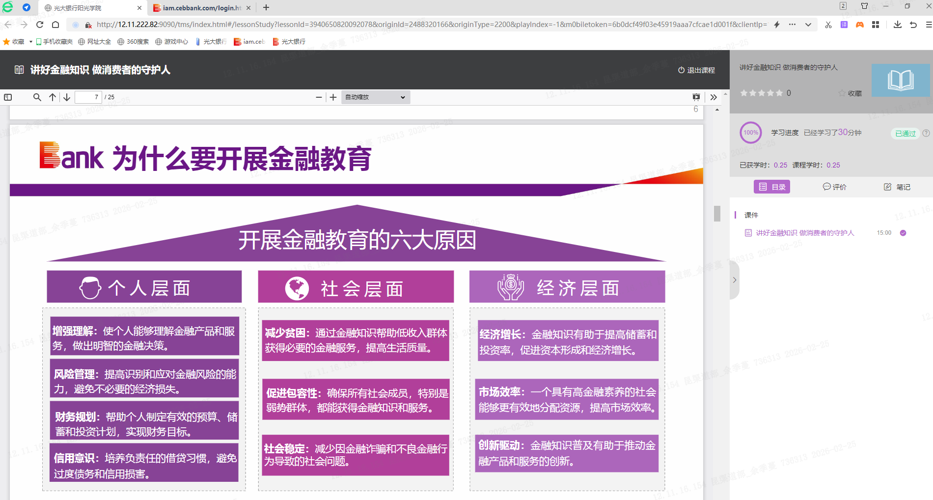 本次培训依托“阳光学院”线上平台开展,支持PC端和移动端双渠道灵活学习,培训内容系统全面,围绕金融教育的核心内涵、开展必要性、实施路径、多元呈现形式及关键开展要素展开,通过理论讲解与实践案例相结合的方式,助力基层员工全面掌握金融教育活动的策划、执行与优化能力。内容精炼实用,有效推动金融知识普及工作规范化、长效化开展。